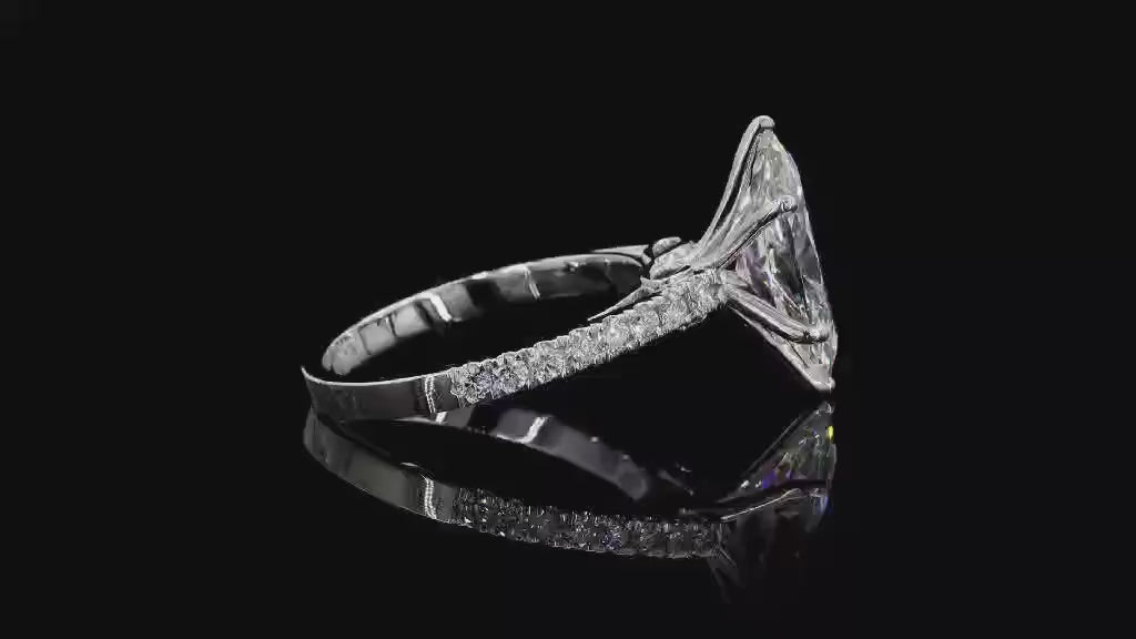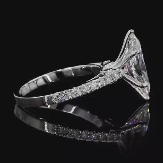 2.5 carat e vvs2 marquise center stone with half carat diamond band in 14k white gold