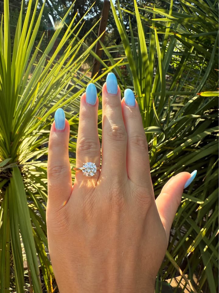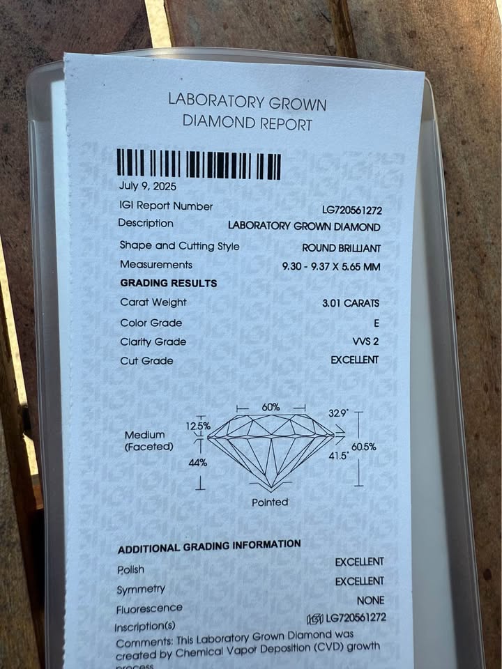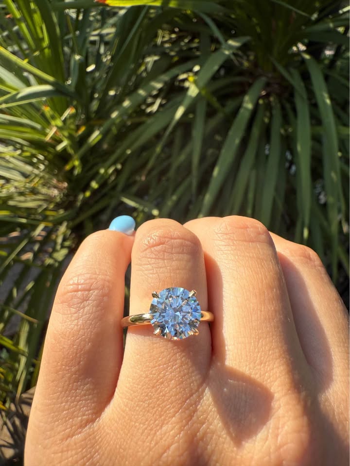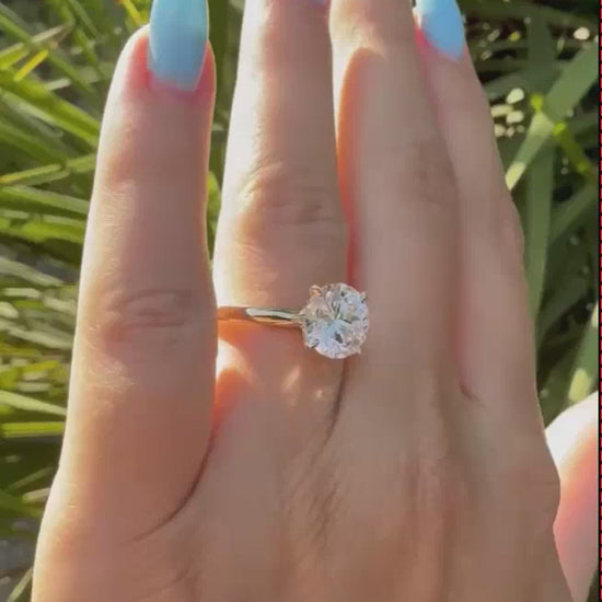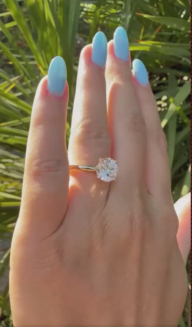 Classic and timeless — a 3 carat round cut E VVS2 lab-grown diamond, set in a sleek 14k yellow gold solitaire.