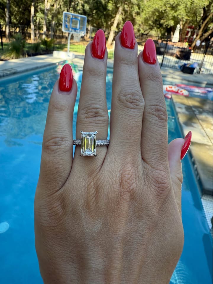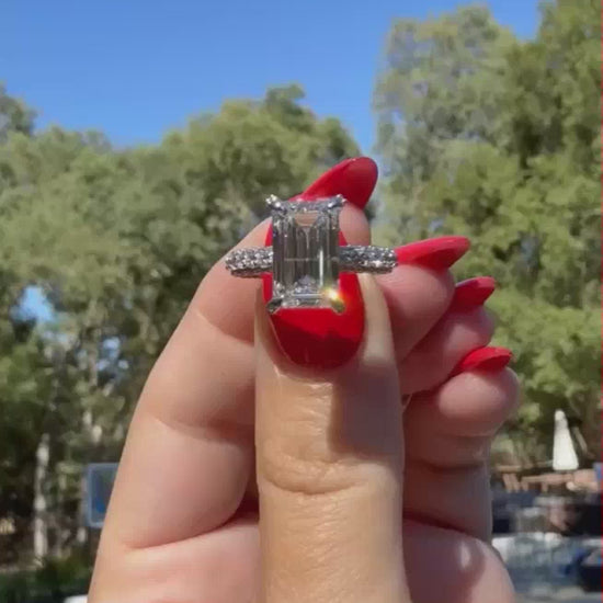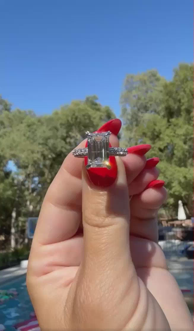 4 Carat Emerald with Triple Pave Band F VS1 Diamond Ring