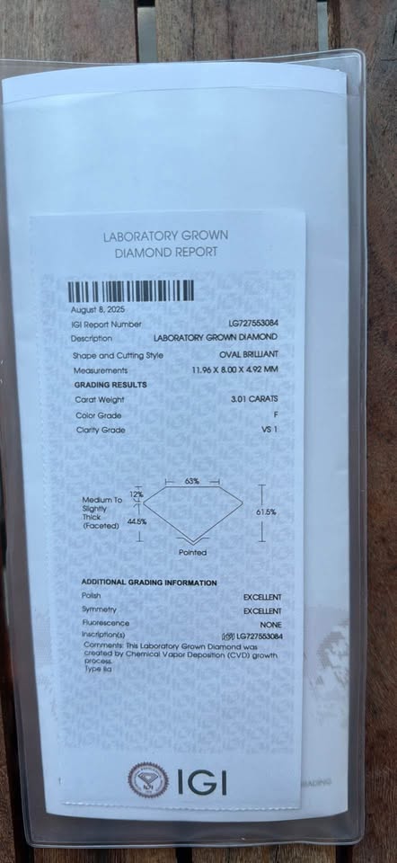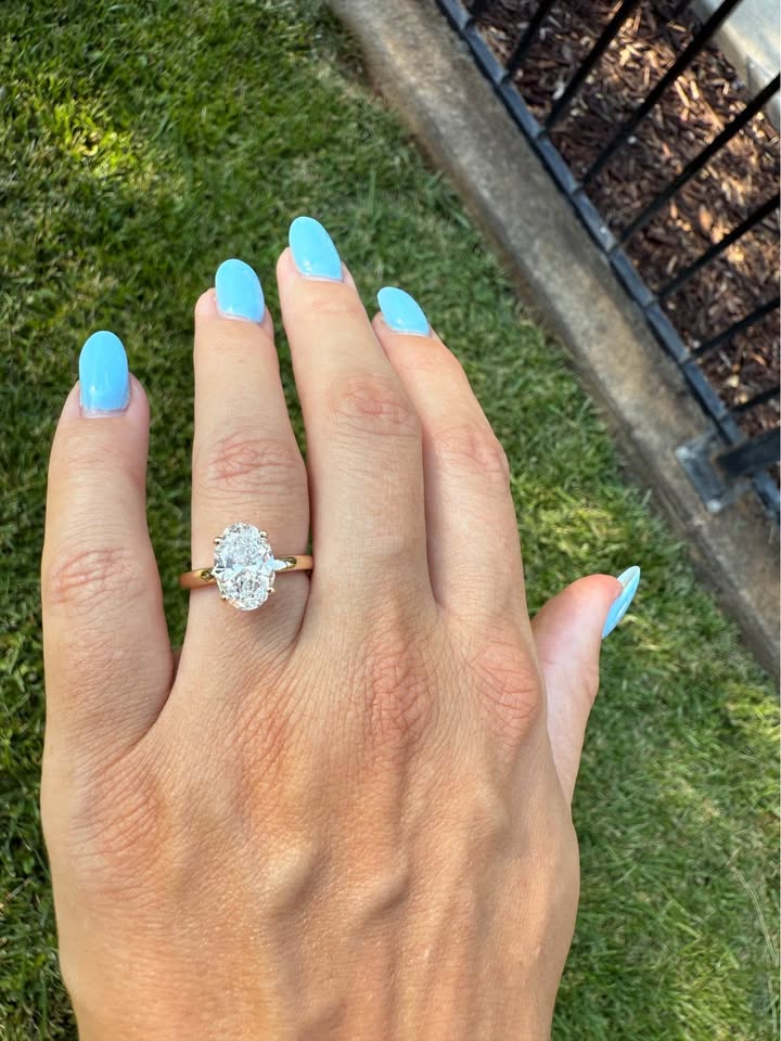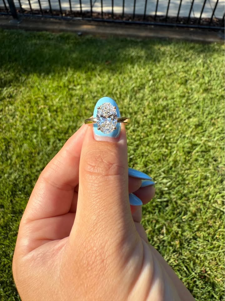Elegant 3 carat oval cut F VS1 lab-grown diamond, set in a timeless 14k yellow gold solitaire design with a hidden halo for subtle added brilliance with IGI certificate. • 100% Real Diamond (Lab-Grown) • F Color | VS1 Clarity • 14k Yellow Gold (Size 7) • Includes IGI Certificate • Resizing available for $100 💎 Explore more of our collection at: DiamondsByMadison.com We also create custom settings, necklaces, bracelets, and more. ✅ Guaranteed Best Prices