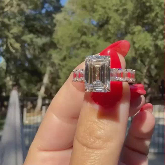 Show stopping 4.90 Carat Emerald Diamond Ring with 5 carat band in 18k yellow gold